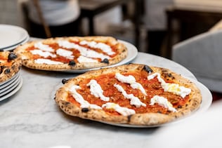 50 rimanda alla cabala napoletana, è il pane, mentre kalò dal greco kalos (bello) nel gergo dei pizzaioli sembra essere un’espressione comune per dire 'buono'. Ciro sceglie ‘impasto buono’ come nome dei suoi locali e insieme esprime il suo obiettivo. 50 kalò (che è anche il nome della nostra best pizza) non è solo a Napoli, il brand ha viaggiato verso Roma e poi Londra, anzi, Trafalgar proprio.
