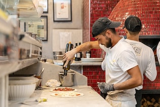 Con Ciro, che non è uomo di molte parole mentre lavora, abbiamo fatto una bella chiacchierata, e, oltre a darci la ricetta per fare la pizza a casa, ci ha spiegato perché la pizza napoletana è morbida e soffice: la ragione è la cottura veloce “cuoce in 60 secondi a 500 gradi, ha una cottura violenta che le fa conservare la morbidezza e in questo modo gli ingredienti non si stressano con la cottura, la mozzarella resta viva”.