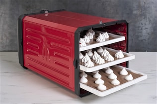Quello che abbiamo provato noi è l’Atacama Pro, proprio come lo straordinario deserto sudamericano, un luogo indimenticabile e fra i più secchi del pianeta. È il modello base di Tre Spade, azienda leader nel settore delle macchine da cucina, un essiccatore ventilato a flusso d’aria orizzontale. Abbiamo preparato meringhe, barrette ed essiccato le verdure per ottenere del brodo vegetale granulare.