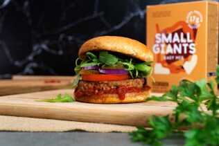 Infine, i burger e le polpette. Che non vengono venduti come burger e polpette ma come un preparato cui poi dare la forma che si vuole. Spieghiamo: si chiama Easy Mix, un pacchetto da 140 grammi costa 8 euro e si presenta appunto come una farina, da fare rinvenire con acqua e olio. All’apertura si percepisce un forte odore di dado (umami, direbbero quelli bravi) e una leggera nota di biscotto: dopo l’aggiunta di liquidi si ottiene un impasto che sembra in tutto e per tutto il macinato, da usare appunto per creare le polpette con le mani. Come si farebbe per qualsiasi polpetta. Poi le si mette in padella con un filo d’olio, si attende che siano dorate e si possono mangiare. Questo è senza dubbio il prodotto di Small Giants che abbiamo apprezzato meno: il sapore è gradevole, anche senza aggiungere neppure un pizzico di sale, ma al palato la consistenza è un po’ farinosa e meno convincente (per esempio) dei burger di Beyond Meat.