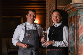 Il nuovo Ristorante Suinsom (1 Stella, dell’hotel Tyrol a Selva di Val Gardena), nasce come il punto più alto di un lungo percorso di ricerca dell'eccellenza nel campo dell'ospitalità e della gastronomia. Guidato dallo chef Alessandro Martellini, è un vero mix tra innovazione e tradizione. Qui il pranzo di Natale è realmente in famiglia: tessuti pregiati e due stuben autentiche in cui gustare Pici verdi ragout d’agnello, tartare di agnello e seppia, e un Branzino con sedano rapa al sale, salsa al lemongrass e levistico dalle montagne che abbracciano questi luoghi.