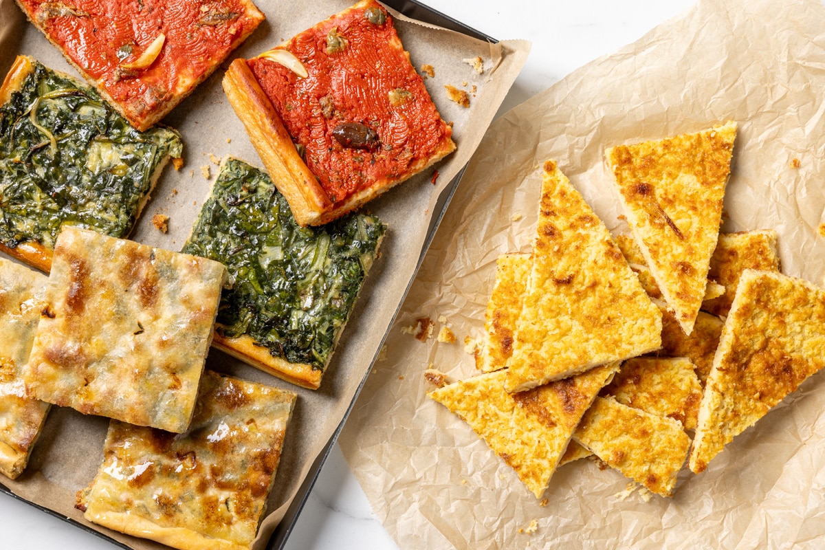 La versione più autentica vuole le zucchine trombette (tipiche della regione, si chiamano così proprio perché ricordano nella forma una tromba) e poco riso, è avvolta in un guscio di pasta molto sottile che lascia protagonista il ripieno. È più spesso tonda ma si trova anche in teglia. Si vende a tranci o in quarti. Perfetta per l’aperitivo. E poi la pizza di bietole e la farinata, meno tipica del territorio ma buona anche qui!