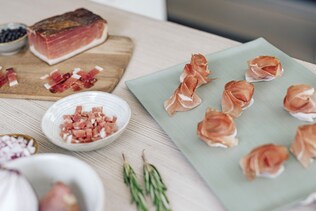 Esiste una regola della tradizione che si tramanda dai tempi antichi nelle valli dell’Alto Adige, terra di produzione dello Speck Alto Adige IGP: “poco sale, poco fumo e molta aria”. Quasi una formula magica, essenziale per ottenere un salume inconfondibile, nel sapore e nel carattere. Un prosciutto crudo, leggermente affumicato e stagionato all’aria pura, dal gusto e dall’aspetto che si riconoscono al primo istante.