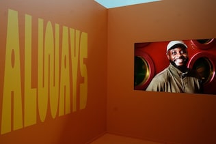 Qui i visitatori possono sedersi e ascoltare le parole del designer, inserite all’interno dell’allestimento come parte integrante dell’esperienza. Ilori lavora su un immaginario visivo che combina simboli naturali e segni grafici - mani, forme circolari, pattern ripetuti - per costruire una narrazione legata alla condivisione.