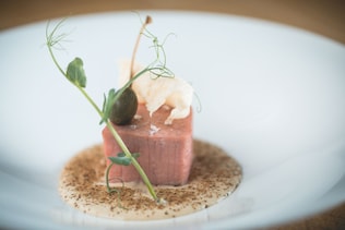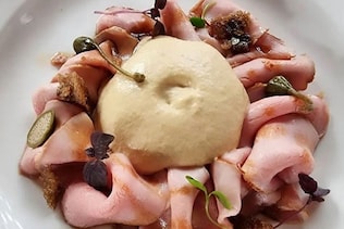 Altro giro, altro vitello tonnato: a La Morra, tra i filari di Barolo, chef Giuseppe Lo Presti di Osteria Arborina, reinventa pur senza stravolgimenti il grande classico: “L'idea di questo piatto è nata pensando di dare un tocco innovativo e personale al piatto. Per questo l'ho chiamato "Vitello tonnato a modo mio": ha una nuova veste.” Il cappero è in polvere, la fetta di vitello diventa un cubo, e una cialda di riso croccante è il mezzo per una scarpetta sempre obbligatoria.