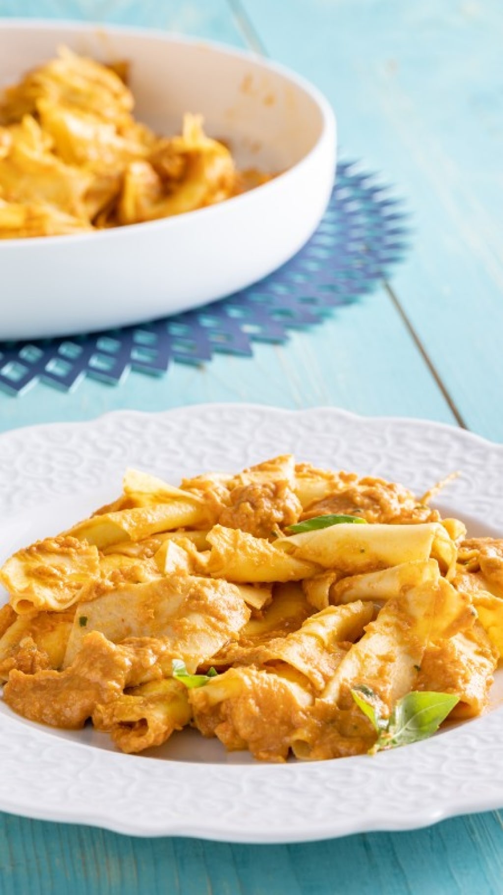 Se cercate altre idee per preparare una pasta cremosa con i peperoni ecco i bucatini con salsa di peperoni, i taglierini con mascarpone e peperoni e i rigatoni integrali con crema di peperoni.