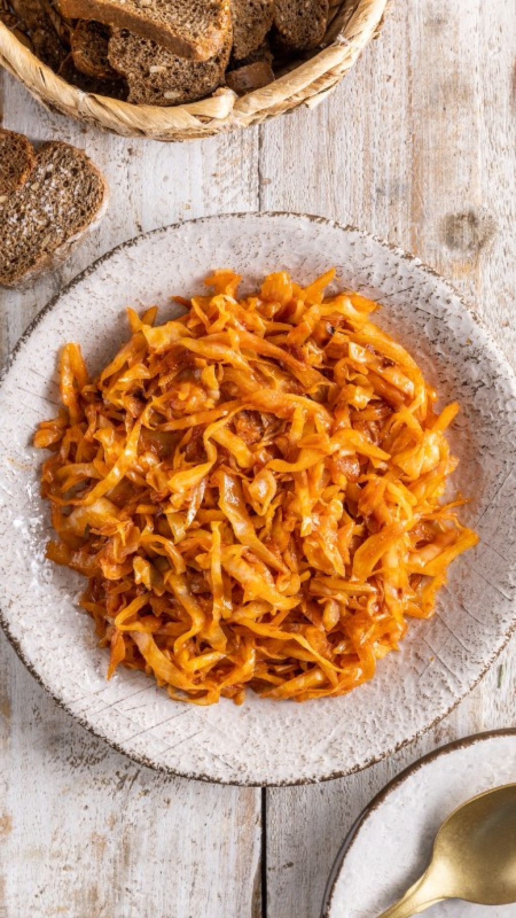 Mescolate con cura tutti gli ingredienti, coprite con un coperchio e fate cuocere a fiamma bassa per 30/40 minuti. A fine cottura servite in un piatto da portata e il vostro cavolo cappuccio in umido alla siciliana è pronto.