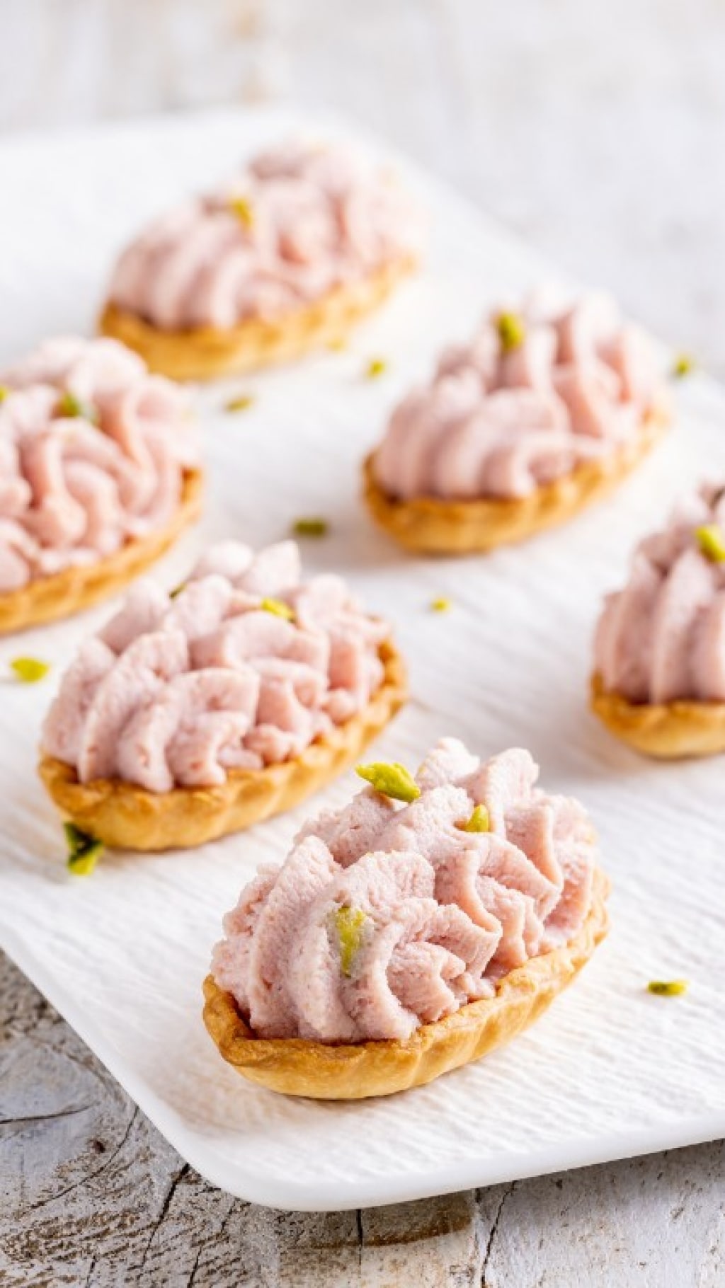 Le barchette salate di pasta brisée sono una ricetta sfiziosa per un antipasto facile e veloce che si può anche preparare in anticipo. Noi le abbiamo farcite con una gustosa mousse di mortadella e ricotta e decorate con granella di pistacchi.