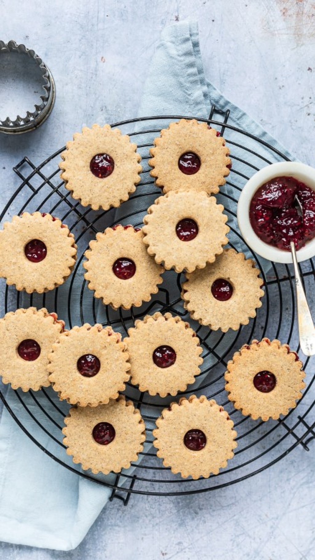 Quando i biscotti saranno appena dorati sfornateli e fateli raffreddare completamente. Accoppiate quindi un disco intero e una corona saldandoli con la confettura di lamponi. Una volta composti, i biscotti al grano saraceno sono pronti per essere serviti e gustati!