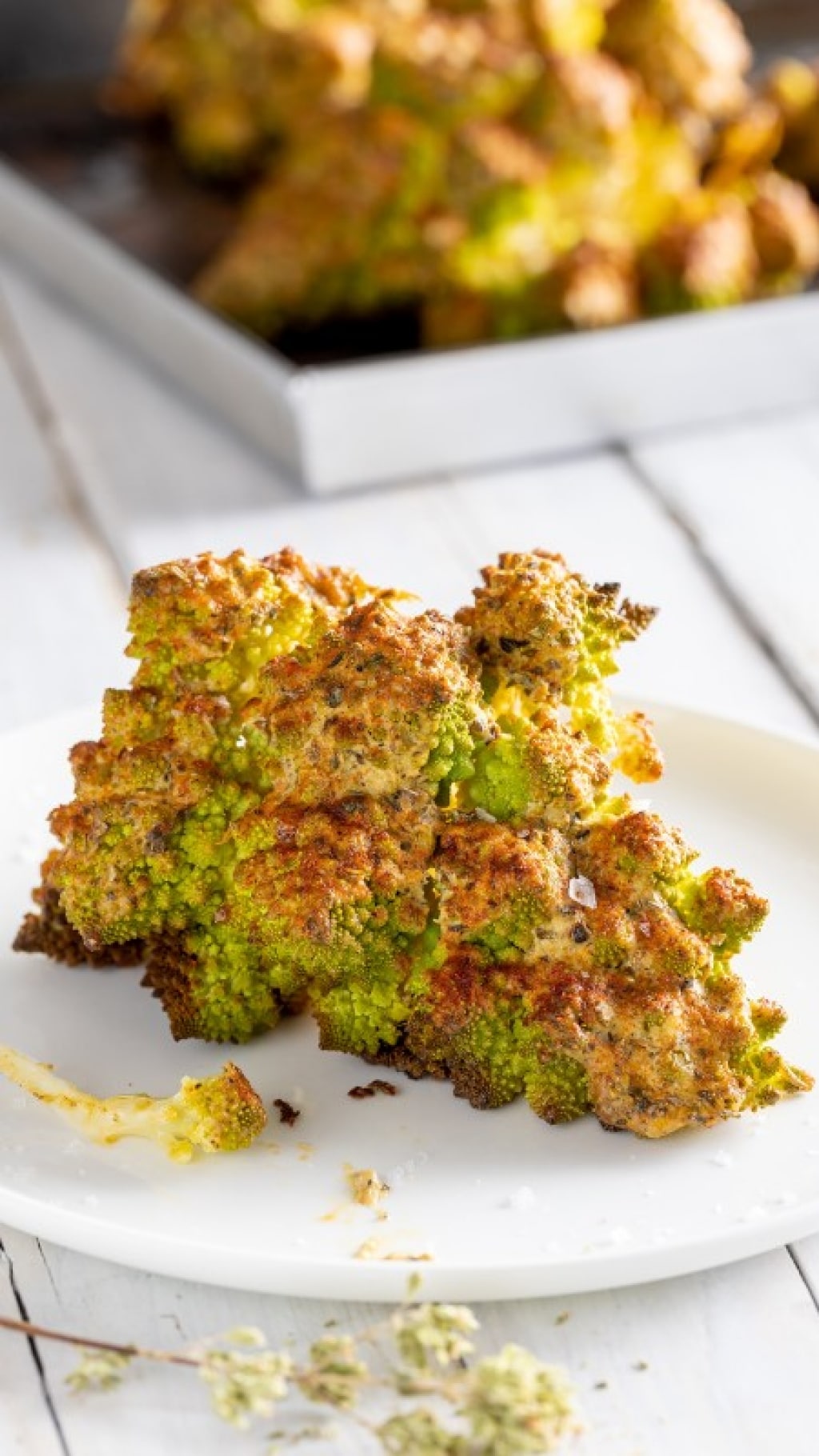 Trasferite nei piatti singoli. Ecco che il vostro broccolo romanesco al forno è pronto per essere servito. Buon appetito!