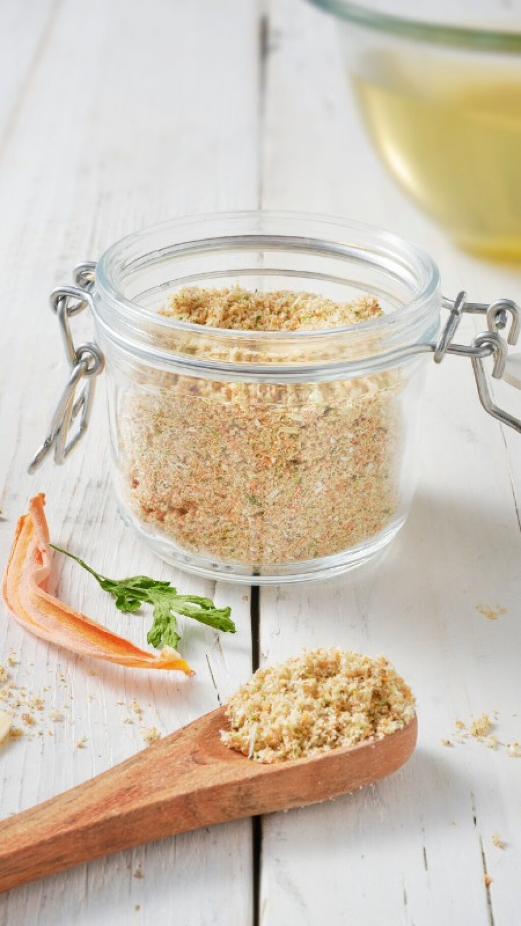 Frullate a lungo ottenendo una polvere e chiudete il brodo granulare in un contenitore ermetico per la conservazione.