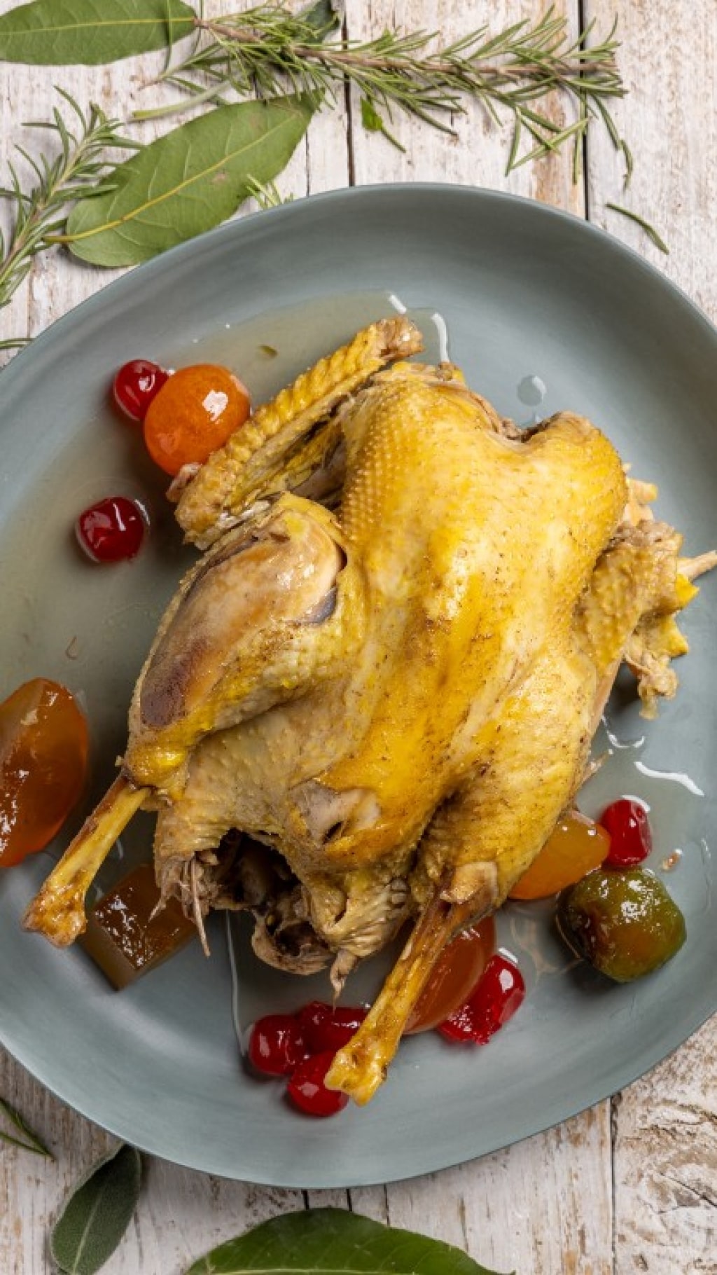 Il cappone in brodo mantiene la carne molto morbida, particolarmente adatta per essere servita con della mostarda o con qualche salsa. Il brodo che se ne ricava è straordinario per un consommé o come base per altre preparazioni.
