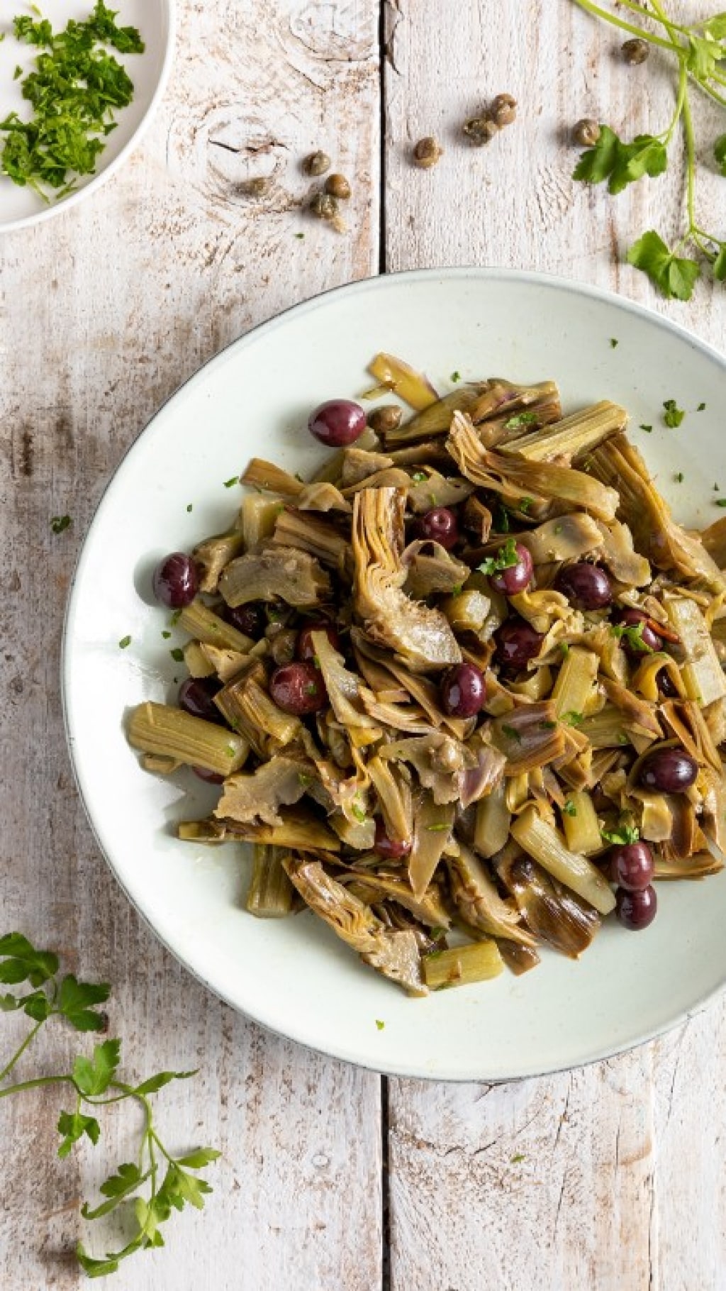 I carciofi alla napoletana sono una ricetta molto semplice e altrettanto gustosa, un classico della cucina partenopea che mette insieme il sapore unico e delicato dei carciofi con quello sapido di olive e capperi. Il risultato è un contorno saporito, leggermente piccante per la presenza di un po' di peperoncino, e decisamente sfizioso. La ricetta è facile e una volta puliti i carciofi la cottura procede stufandoli in tegame.