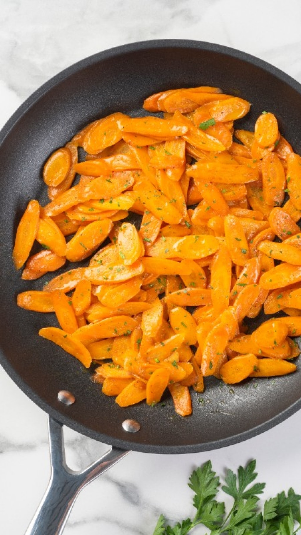 Si tratta di una ricetta facilissima e veloce, pronta in meno di mezz'ora e adatta ad accompagnare secondi di carne, di pesce o con formaggi freschi e stagionati. Così preparate, le carote risultano tenere ma non molli, piacevoli nel sapore e nella consistenza.