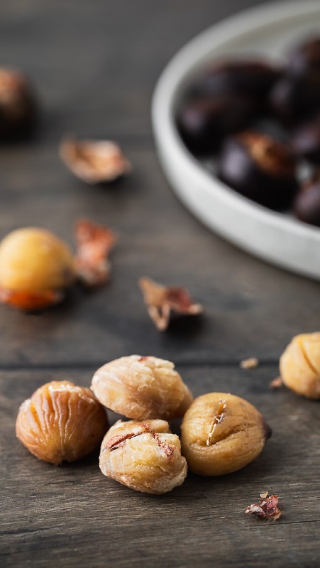 La preparazione è facile, abbiate cura di tenere in ammollo le castagne in acqua fredda prima di cuocerle e ricordate di praticare la classica incisione lungo la superficie bombata.
