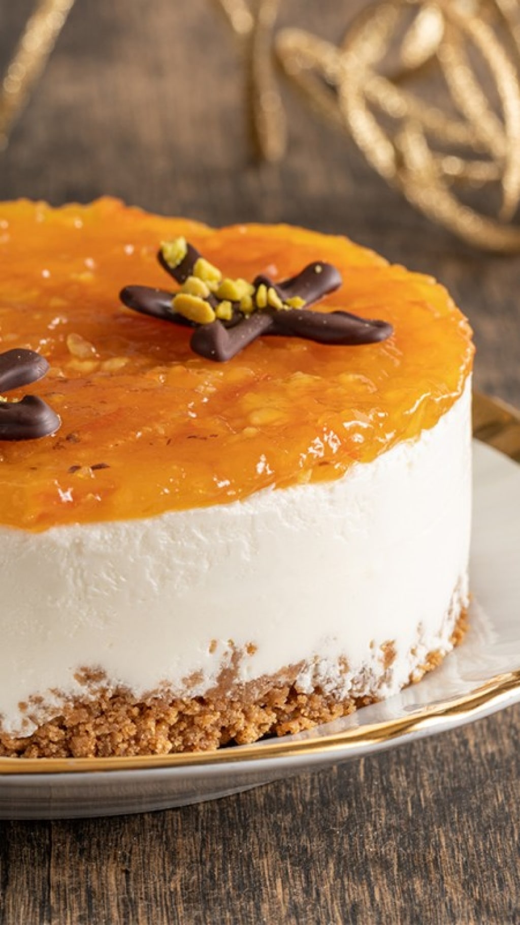 Togliete la torta dallo stampo e trasferitela su un piatto da portata, guarnitela a piacere con decorazioni di cioccolato o granella di pistacchio. La cheesecake fredda senza glutine con marmellata di arance amare è pronta per essere portata in tavola.