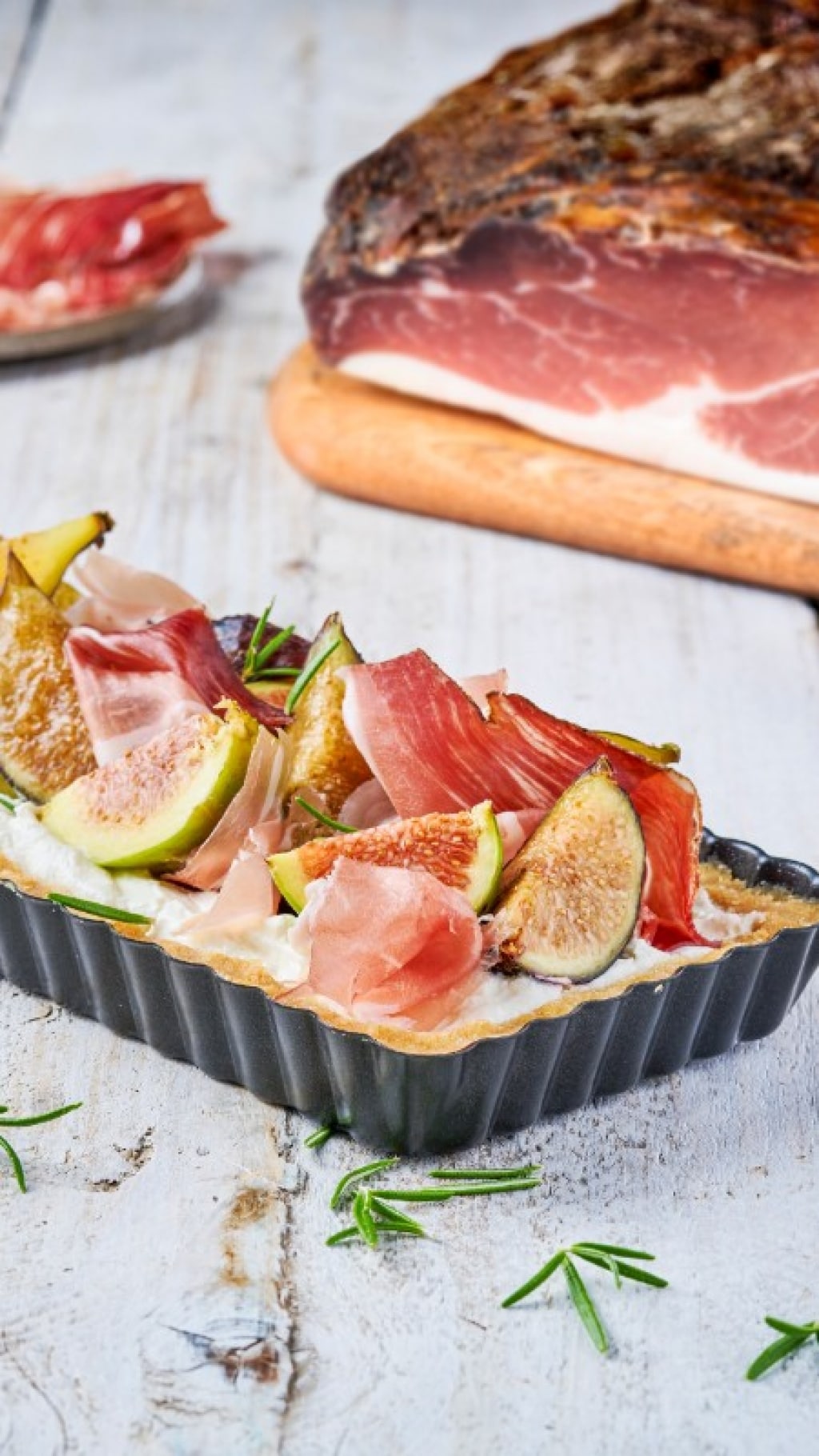 Questa cheesecake salata senza cottura è la ricetta ideale come idea per cena o per l'aperitivo. La ricca decorazione con speck e fichi è scenografica da vedere e irresistibile al gusto. Una proposta contemporanea a base di eccellenze italiane!