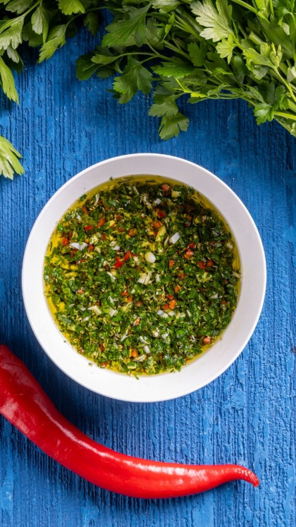 Il chimichurri è la salsa di accompagnamento alle grigliate di carni miste che si gusta comunemente in buona parte dell'America Latina. Una salsa verde facile da preparare, originaria dell'Argentina ma amata davvero ovunque.