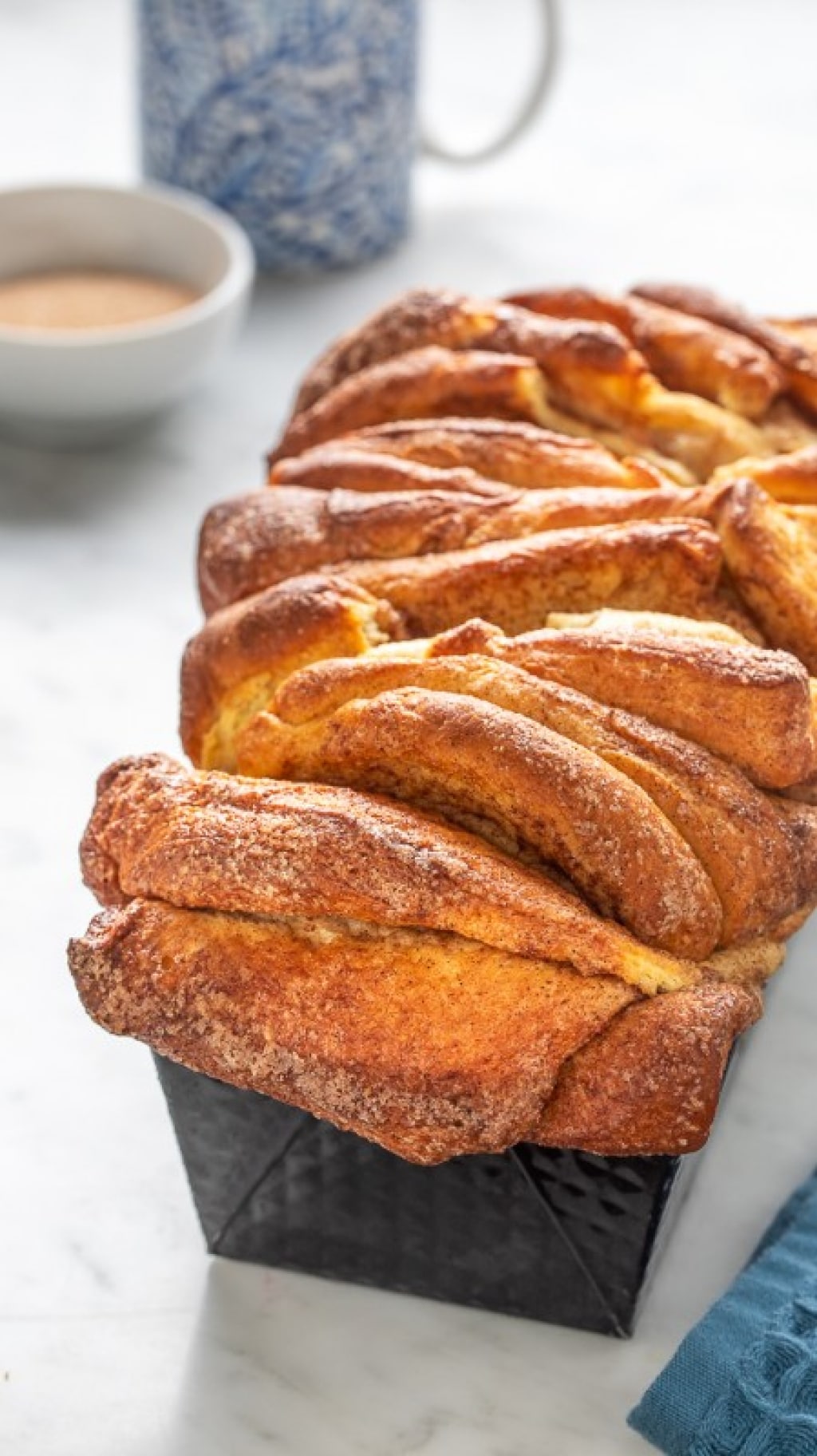 La ricetta per realizzarlo è molto più semplice di quanto possa sembrare all'apparenza. Si tratta infatti di ritagliare tanti rettangoli di pasta lievitata, dopo averla spennellata di burro e cosparsa di zucchero e cannella, e assemblarli in modo da riempirvi uno stampo da plumcake o da pane in cassetta.