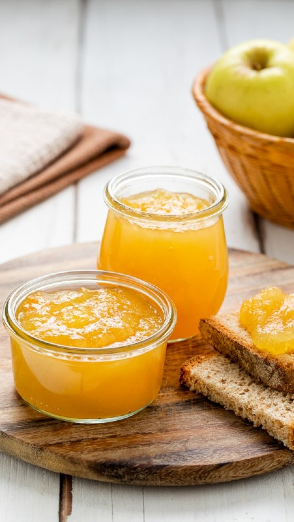 La confettura di mele fatta in casa è uno degli ingredienti per una colazione dolce e sana, da gustare sulle fette biscottate o sul pane. Servita in coppette monoporzione, accompagnata da qualche biscottino leggero e un po’ di frutta secca, che aggiunge un tocco croccante, può essere un’idea per un dessert dell'ultimo minuto.