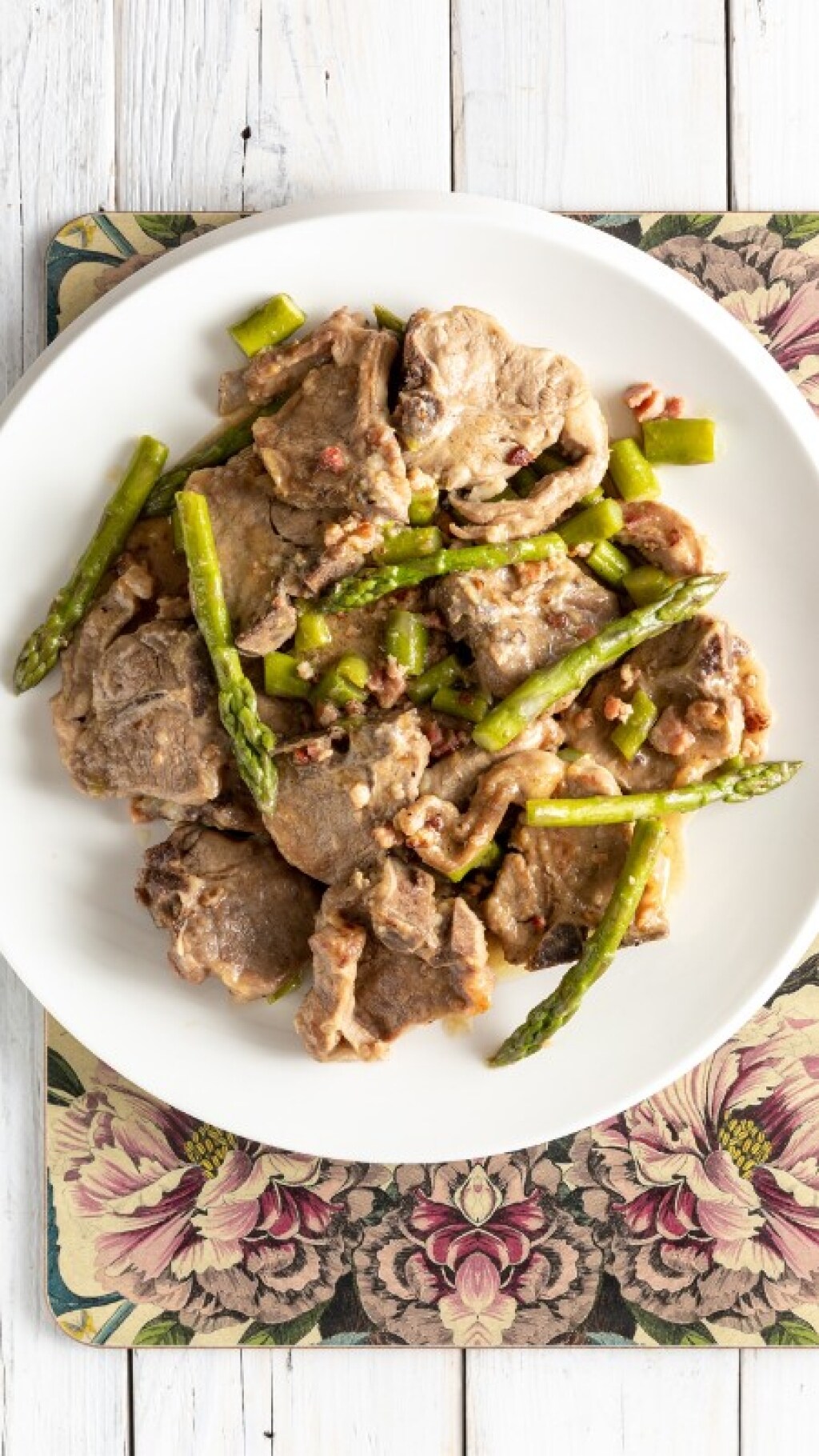 Se non volete rinunciare alla costolette di agnello e provare una ricetta alternativa rispetto alle costolette di agnello a scottadito o al forno, vi suggeriamo questa ricetta: agnello in padella con l'aggiunta di asparagi e pancetta. Può essere una proposta per il pranzo di Pasqua, un'idea originale rispetto alle ricette più tradizionali.