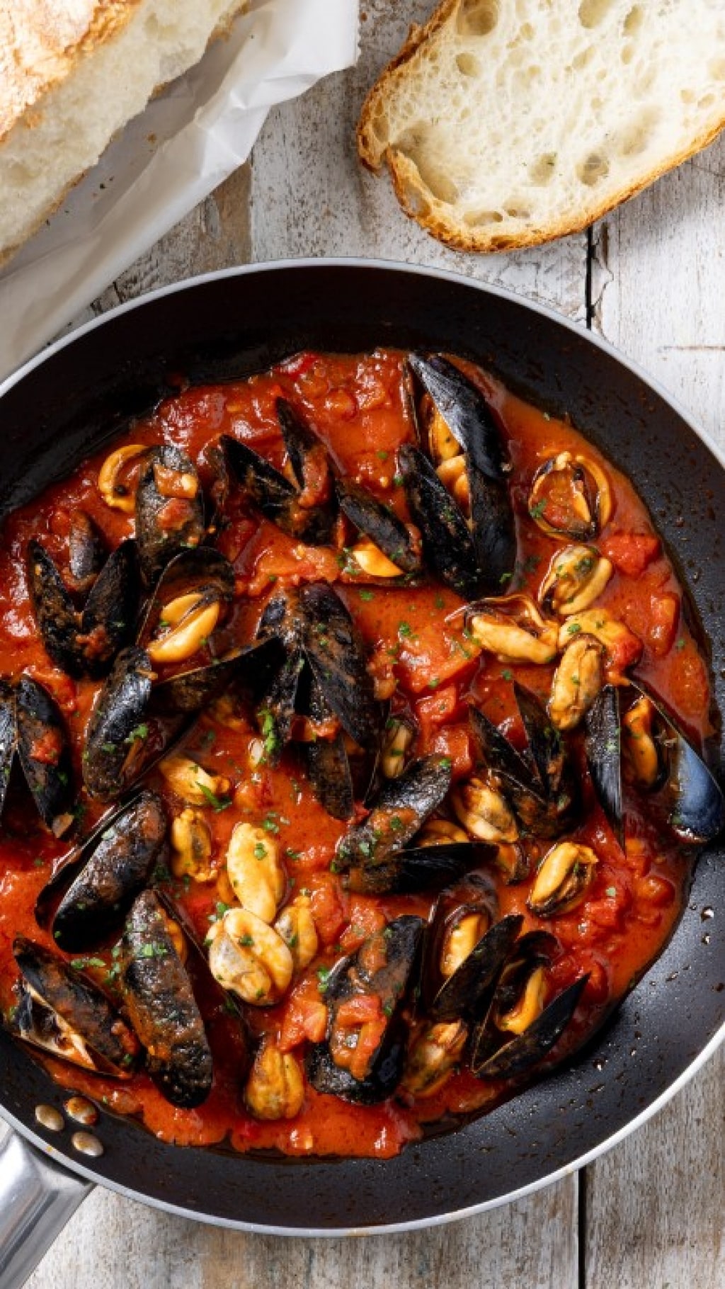 Le cozze alla tarantina sono una ricetta di mare dal gusto eplosivo. In questa ricetta tipica pugliese le cozze si cuociono in un sugo di pomodoro profumato con aglio, peperoncino e prezzemolo. Sono un piatto conviviale da condividere al centro del tavolo e da gustare con del buon pane fresco.