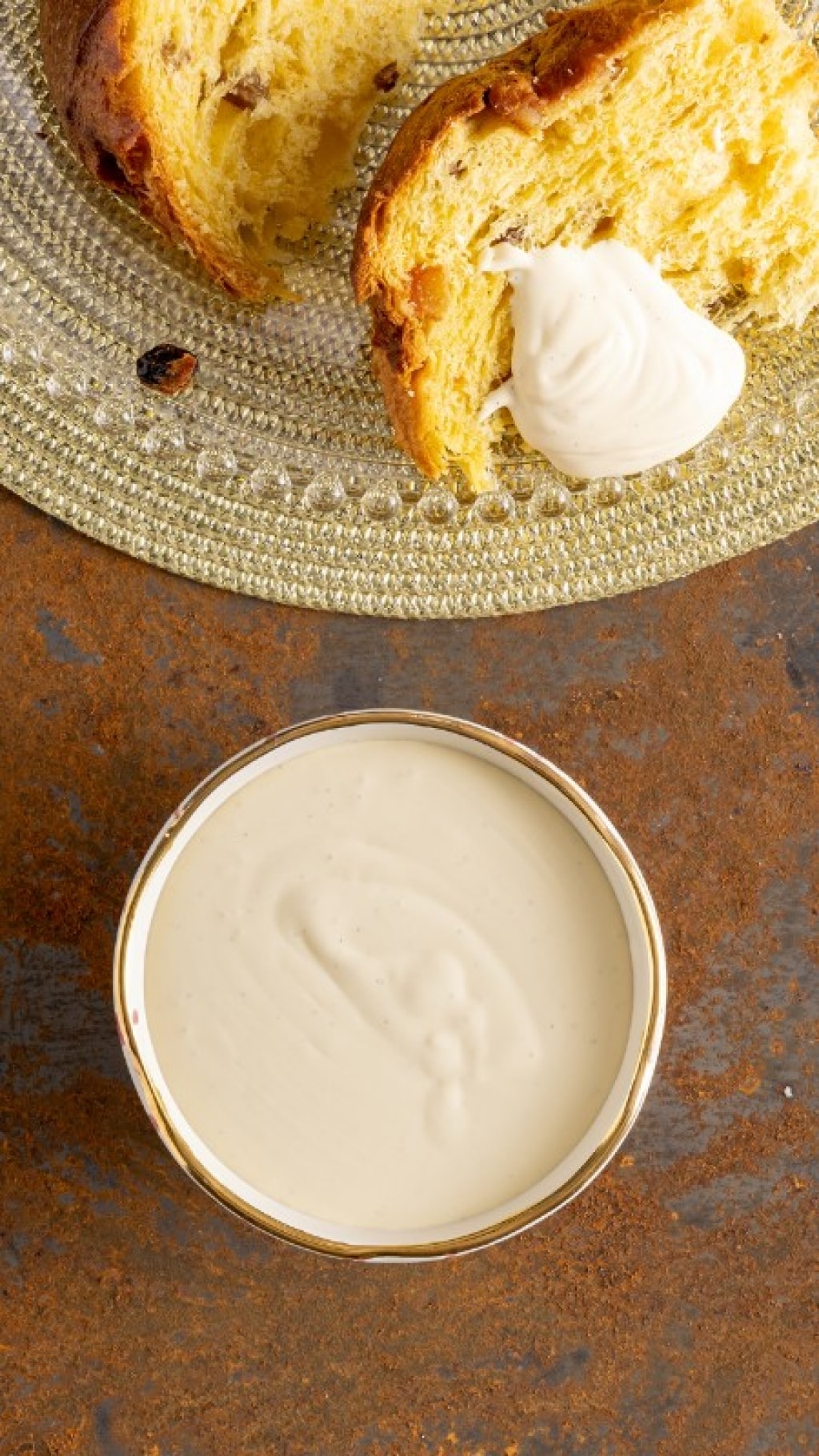 La crema al cioccolato caramellato e mascarpone è una strepitosa salsa dolce, golosa e vellutata, da abbinare al panettone o al pandoro, per chiudere con dolcezza ed eleganza il pranzo di Natale o brindare alle feste con gli amici.