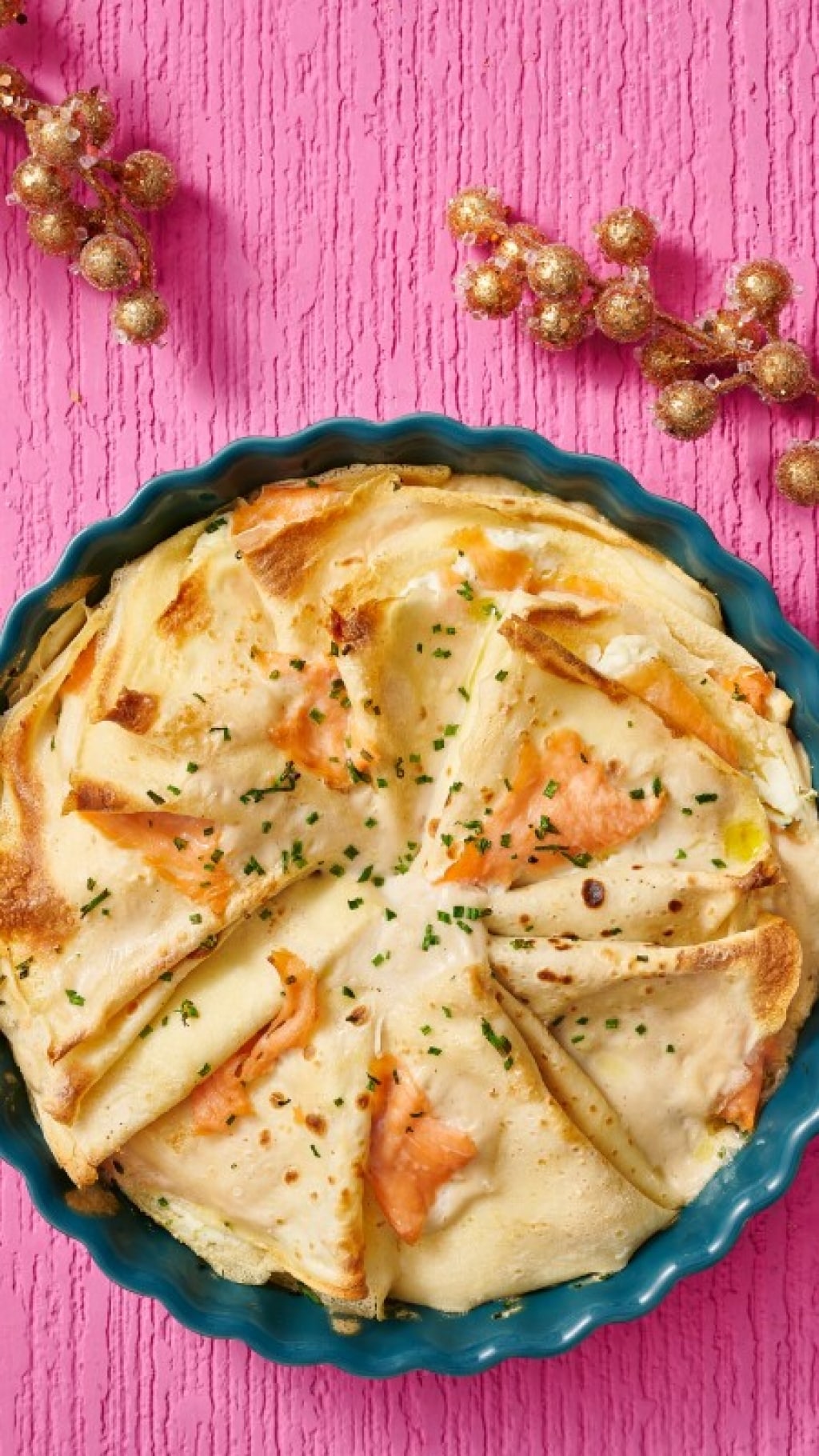 Con un ripieno facile da preparare a base di ricotta e salmone, queste crespelle sono perfette per il menu delle festività natalizie. La ricetta è piuttosto semplice, occorre solo un po' di manualità per la realizzazione delle crepes, che potete preparare seguendo la nostra ricetta.