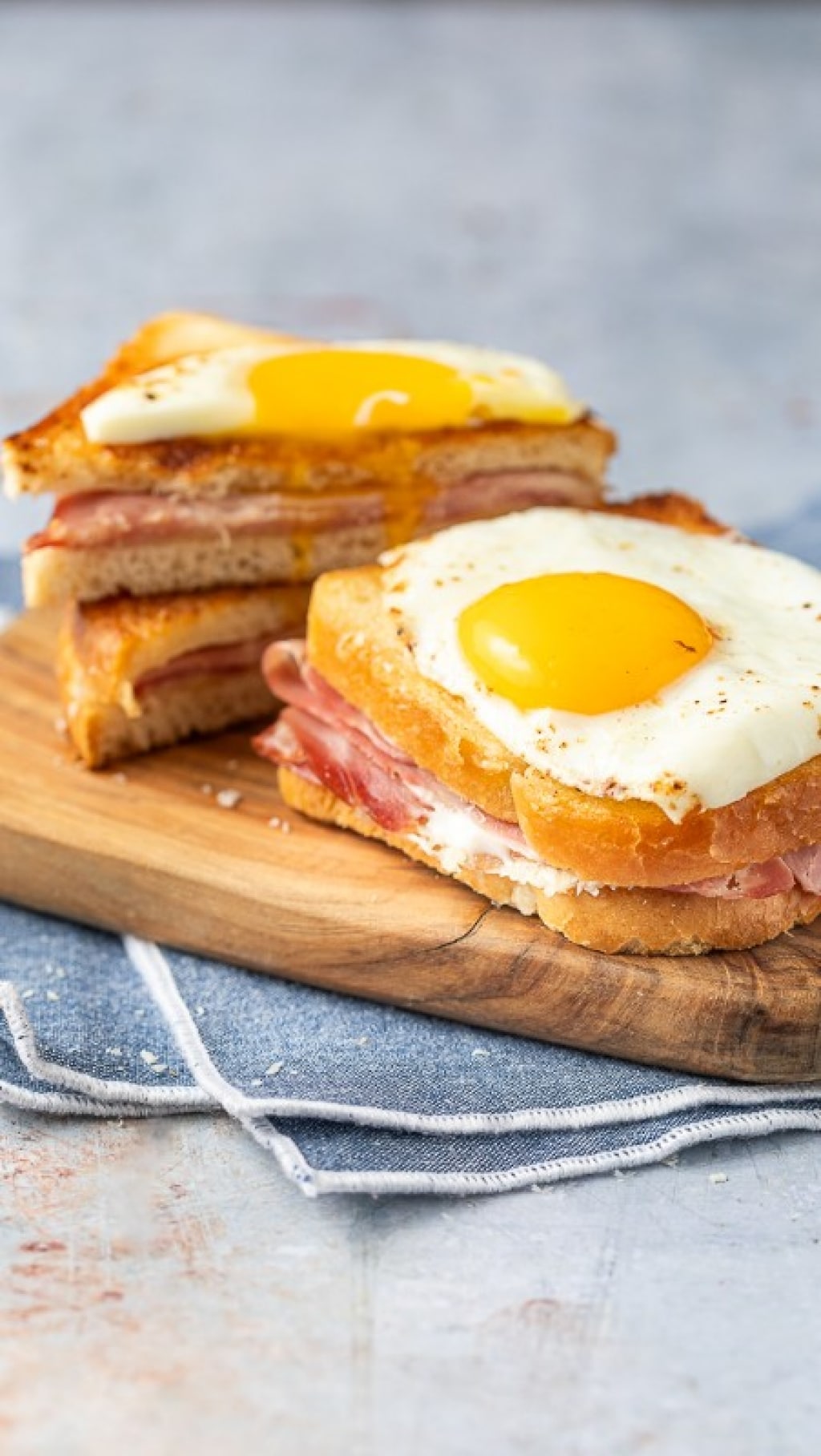 Il croque madame è una piccola specialità di origine francese, un toast composto da pancarrè, farcito di prosciutto cotto e formaggio Gruyère, che viene rosolato in padella nel burro. Alla fine viene guarnito da un uovo all'occhio di bue.