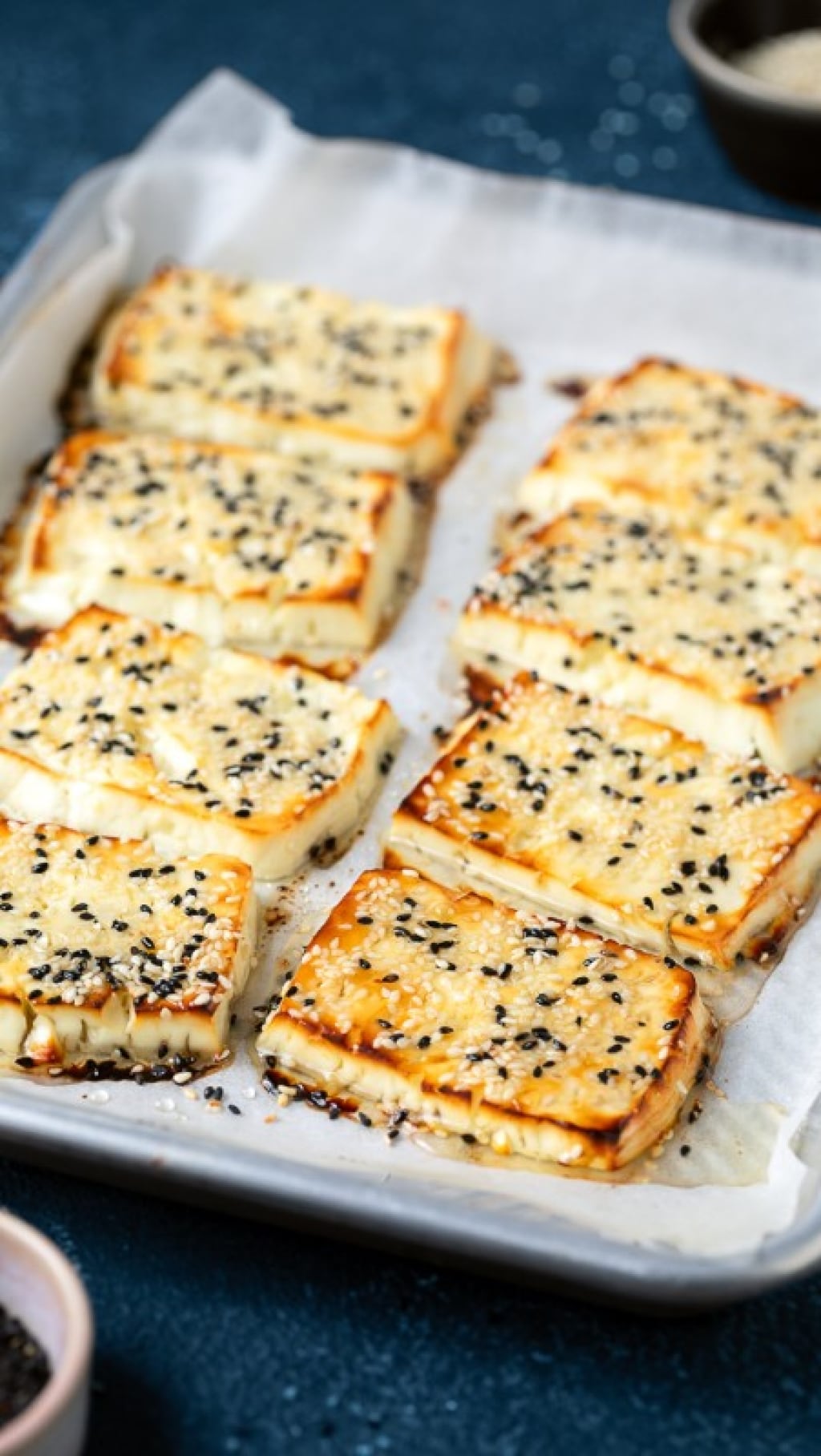 La feta con semi di sesamo è una ricetta semplicissima e deliziosa: fettine di feta al forno, aromatizzate con il miele e coperte da semini di sesamo bianco e nero sono bocconcini perfetti per un antipasto. Servita con pomodorini al forno o un mix di verdure e pane casereccio, la feta al sesamo diventa uno sfizioso secondo leggero.