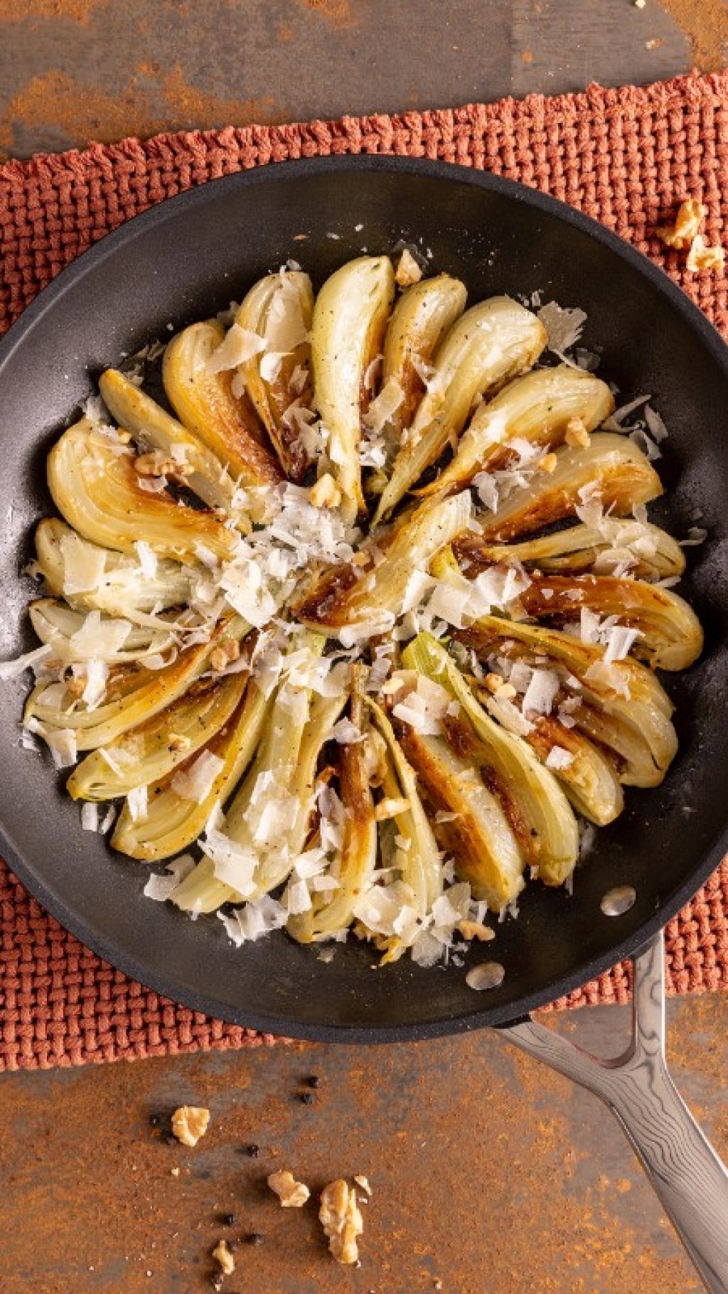 Vi proponiamo una ricetta semplice ma sfiziosa, per cucinare i finocchi in padella: con gherigli di noce e scagliette di grana padano.