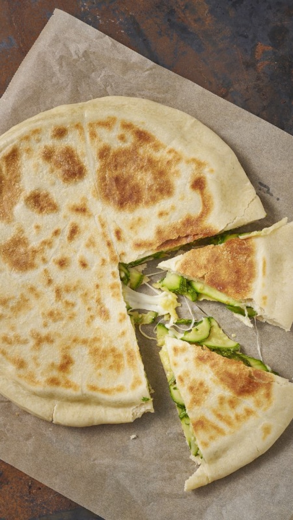 La focaccia in padella con le zucchine sarà pronta quando la superficie risulterà simile a quella della piadina. Servitela come vi piace, calda, tiepida o fredda.