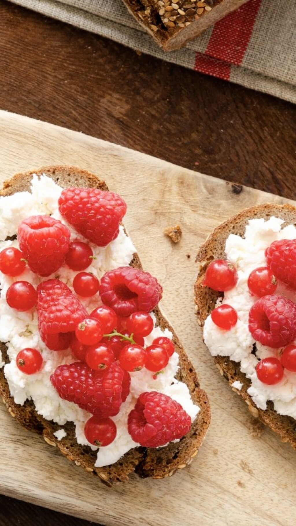 Se è vero che frutta e formaggi si abbinano alla perfezione, noi non abbiamo dubbi: lamponi, ribes e formaggio caprino si esaltano a vicenda per un risultato cremoso e delizioso.