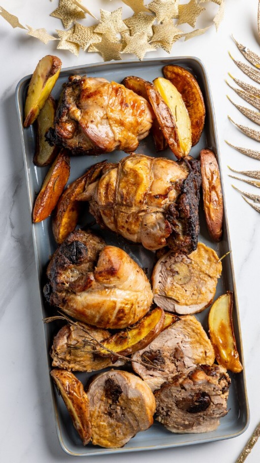 Con un contorno di patate arrosto o di un morbido purè, i fusi di tacchino ripieni invernali sono perfetti per fare un'ottima figura durante un pranzo o una cena di festa, anche se non si è particolarmente esperti in cucina.