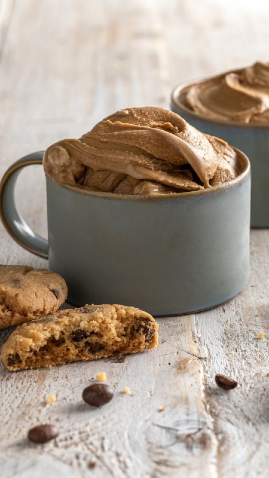Abbiamo servito il gelato al caffè nelle tazze da colazione con dei cookies ricchi di cioccolato, anche se lo proponiamo come dessert, per esempio, alla fine di una cena estiva tra amici. Per chi lo ama, preparare il gelato artigianale a casa è una vera soddisfazione.