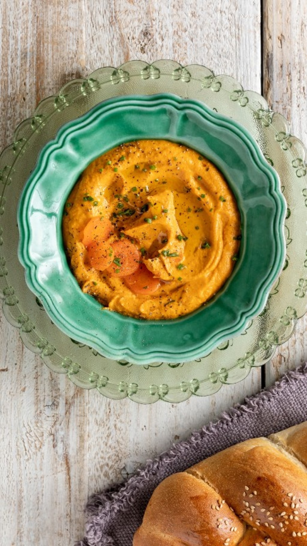 Una variante colorata e creativa del famoso hummus di ceci a differenza del quale, però, non contiene legumi. L'hummus di carote si fa inoltre apprezzare anche in accompagnamento ai formaggi, per ravvivare le uova sode e con secondi di carne o pesce leggeri come il branzino al vapore.