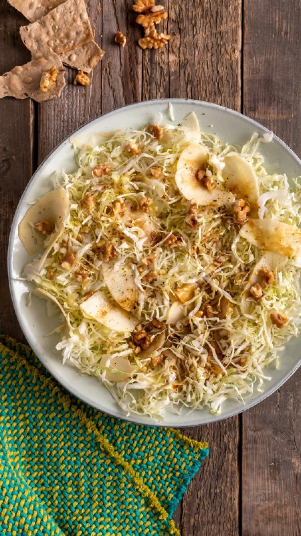 L’insalata di cavolo cappuccio è una ricetta facilissima da preparare, ma non banale. Mette insieme sapori diversi per creare un risultato piacevole: cavolo, mela, noci, cumino e aceto balsamico DOP.