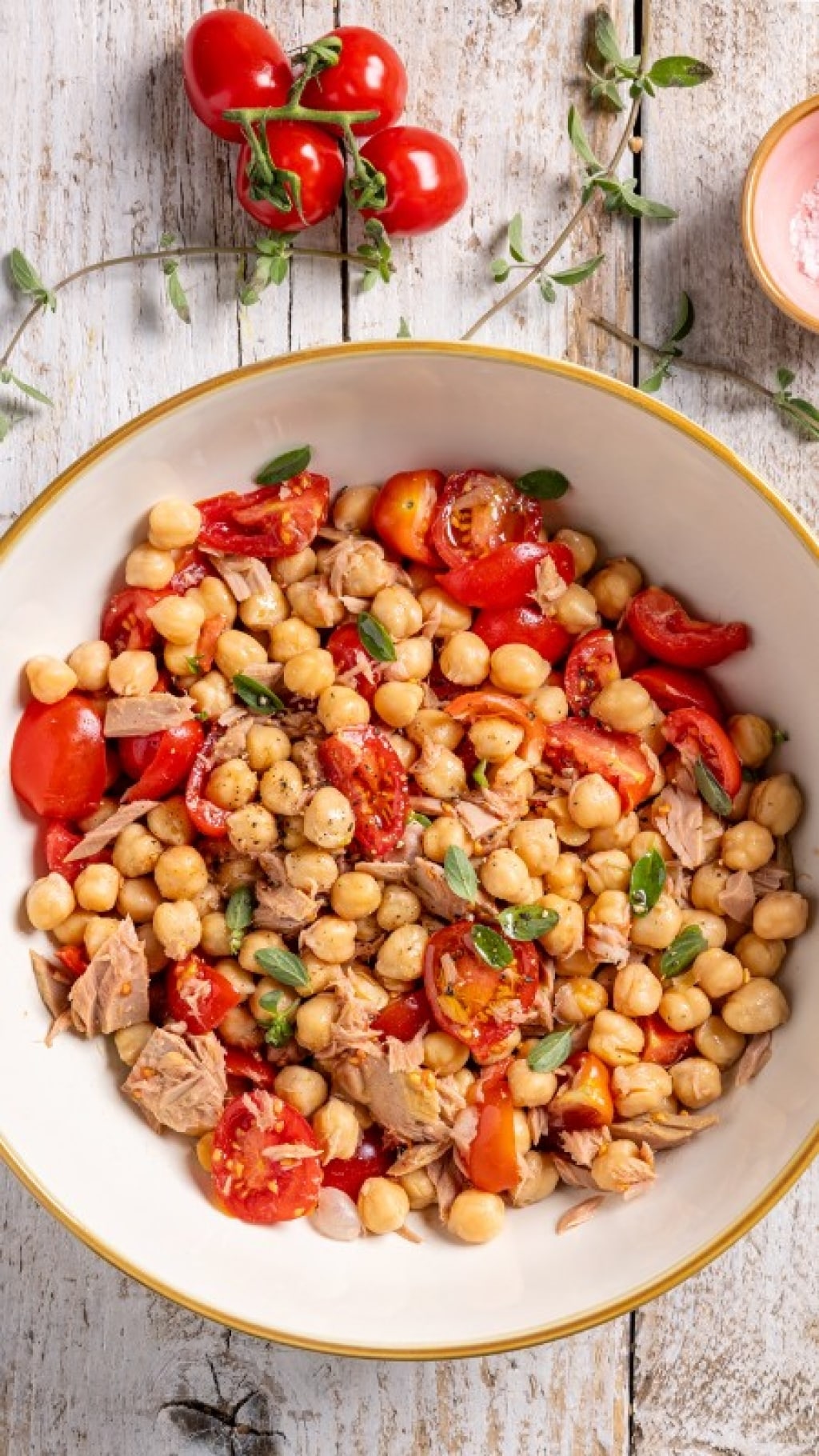 L'insalata di ceci e tonno è una ricetta pronta in dieci minuti, è ottima per un pranzo o una cena veloce, quando la voglia di cucinare non è molta ma cercate un'idea saziante e fresca. Piacerà a tutti!
