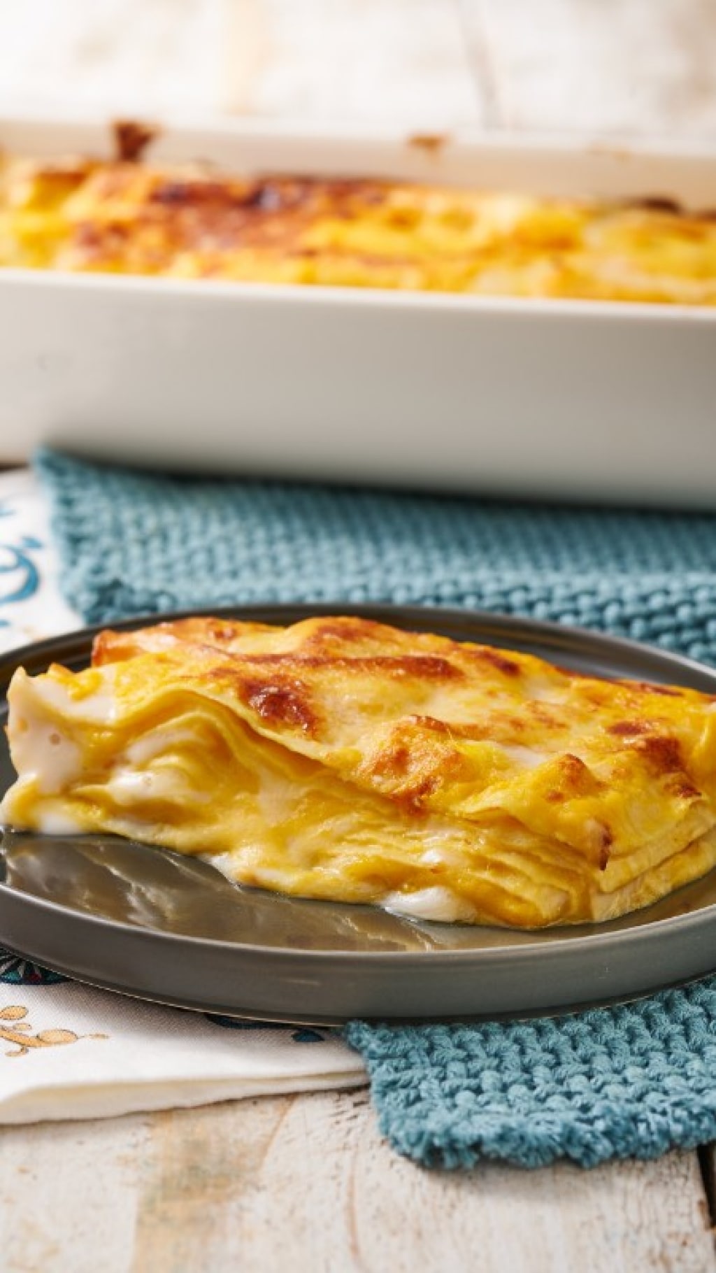 La zucca dona un tocco avvolgente al piatto. Frullandola otterrete una crema deliziosa che si amalgama bene alla besciamella, di cui trovate qui la ricetta. La provola affumicata aggiunge carattere al piatto, contrastando bene la dolcezza degli altri ingredienti.