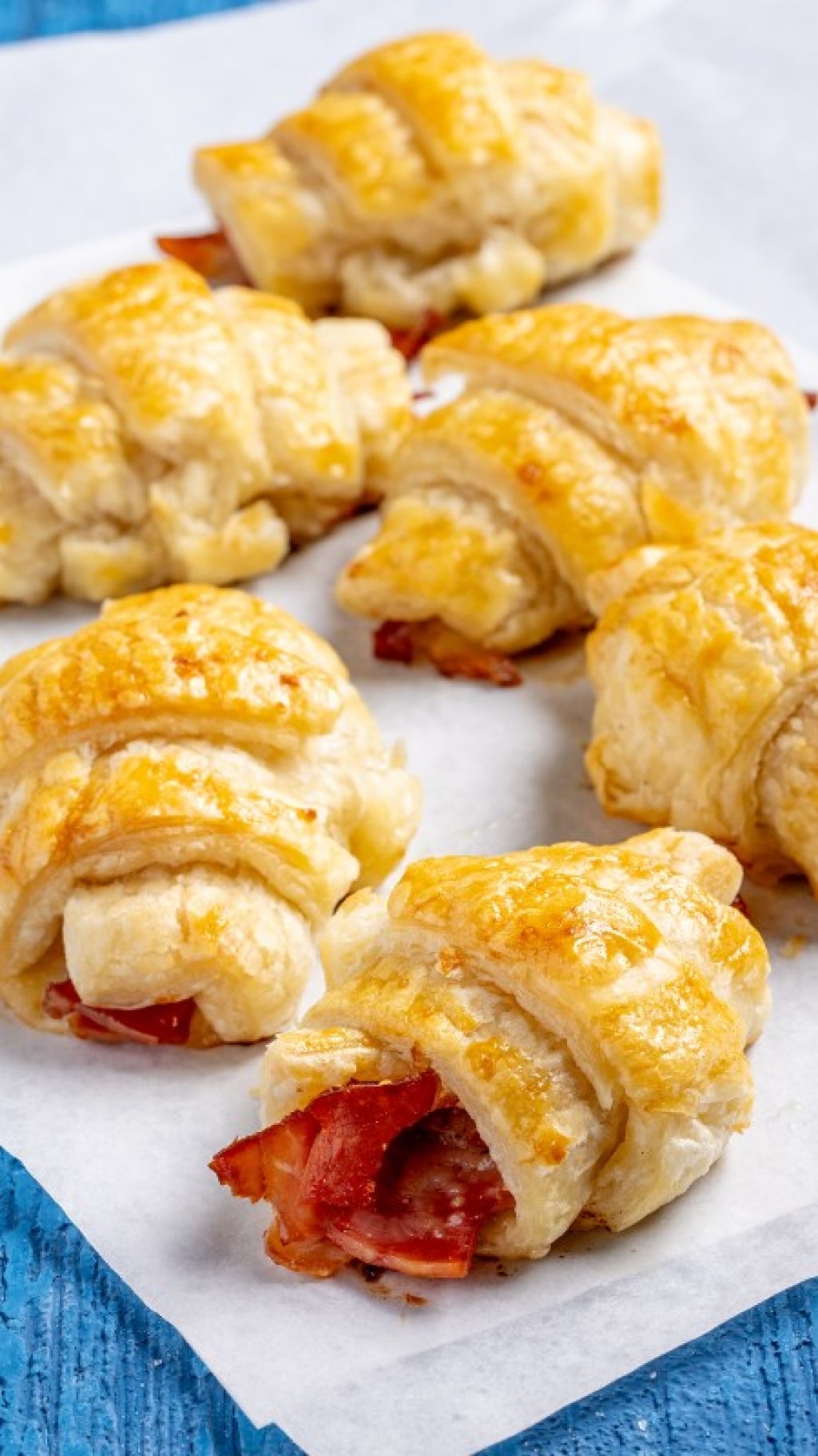 I mini croissant sono un'idea perfetta per un aperitivo o una cena tra amici in cui condividere uno sfizio salato pronto senza sforzo.