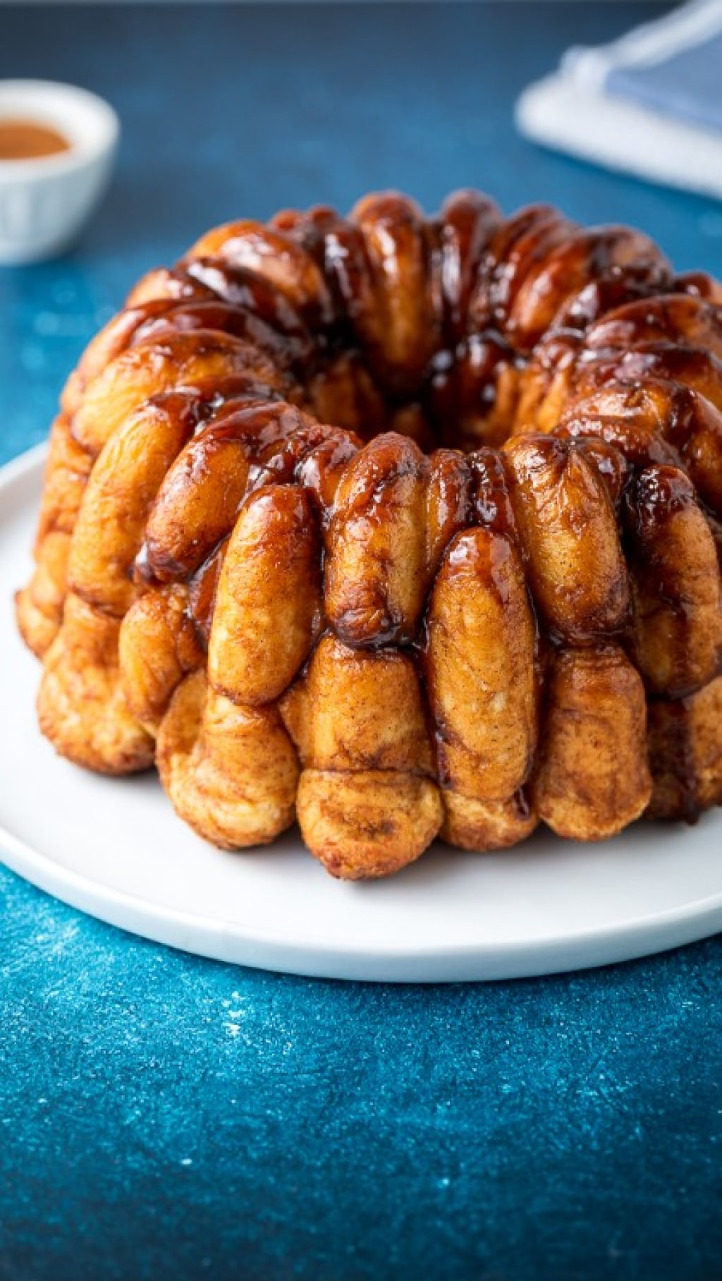 La particolarità del monkey bread sta nella sua forma, una ciambella alta e soffice formata da tanti pezzetti di impasto arrotolati e ricoperti da burro, zucchero e cannella. Per mangiarlo, ognuno strappa una pallina direttamente con le mani, da qui il nome di questo simpatico dolce della tradizione USA.