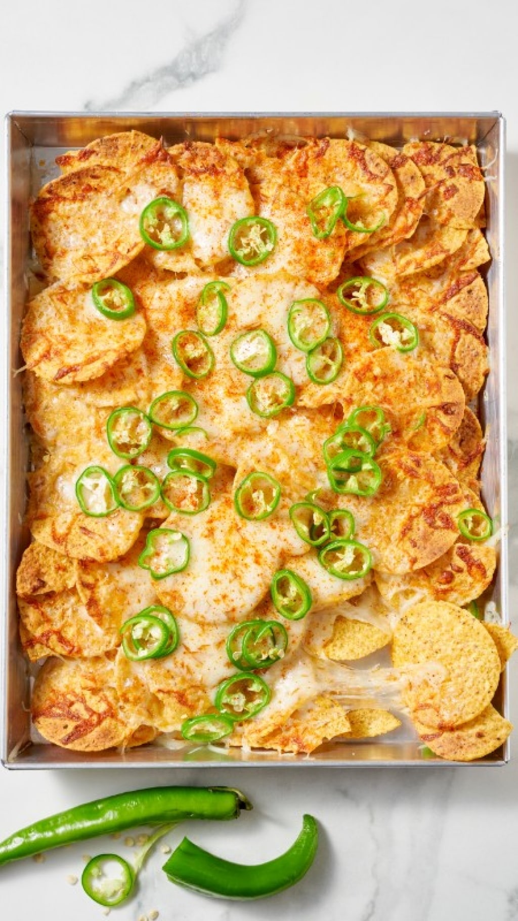 I nachos al formaggio sono un'idea furbissima e super appetitosa per un aperitivo a casa con gli amici: le caratteristiche cialde di mais messicane, già gustose di per loro, con l'aggiunta della provola affumicata, della paprika e dei peperoncini jalapeño diventano davvero irresistibili!