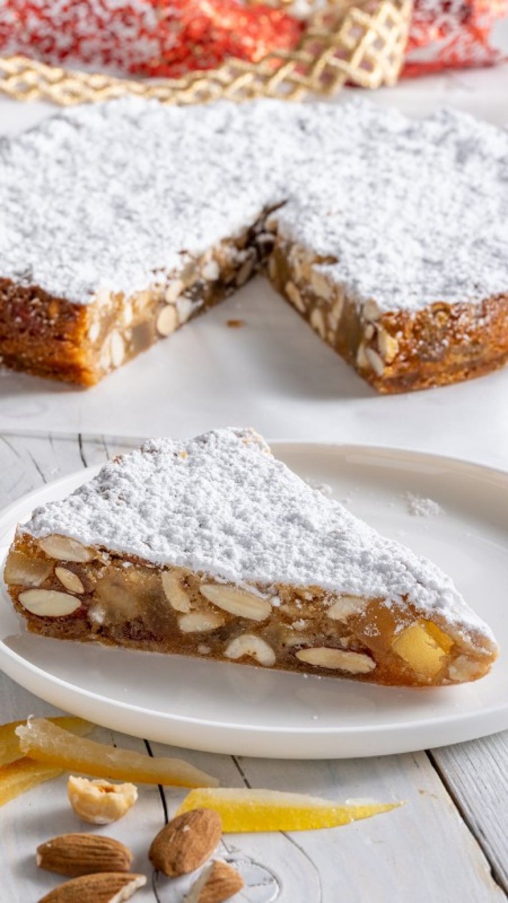 Un dolce che sa di Natale e di inverno grazie a un ricco ripieno di frutta secca e canditi, con un avvolgente aroma di zenzero e cannella.