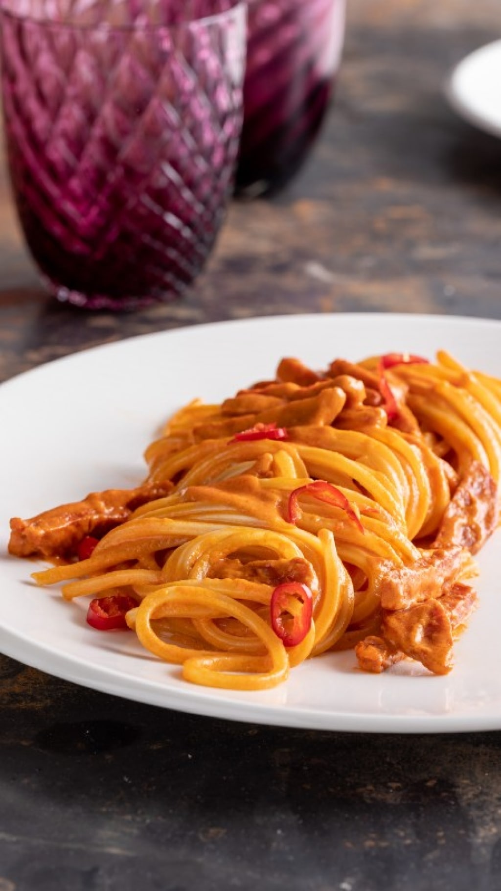 La pasta alla lupara è un primo piatto dalla forte personalità che unisce il piccante della sopressata al dolce della panna e all'acido del pomodoro. Una ricetta facile e veloce, anche sorprendente, e perfetta per un pranzo o una cena tra amici.