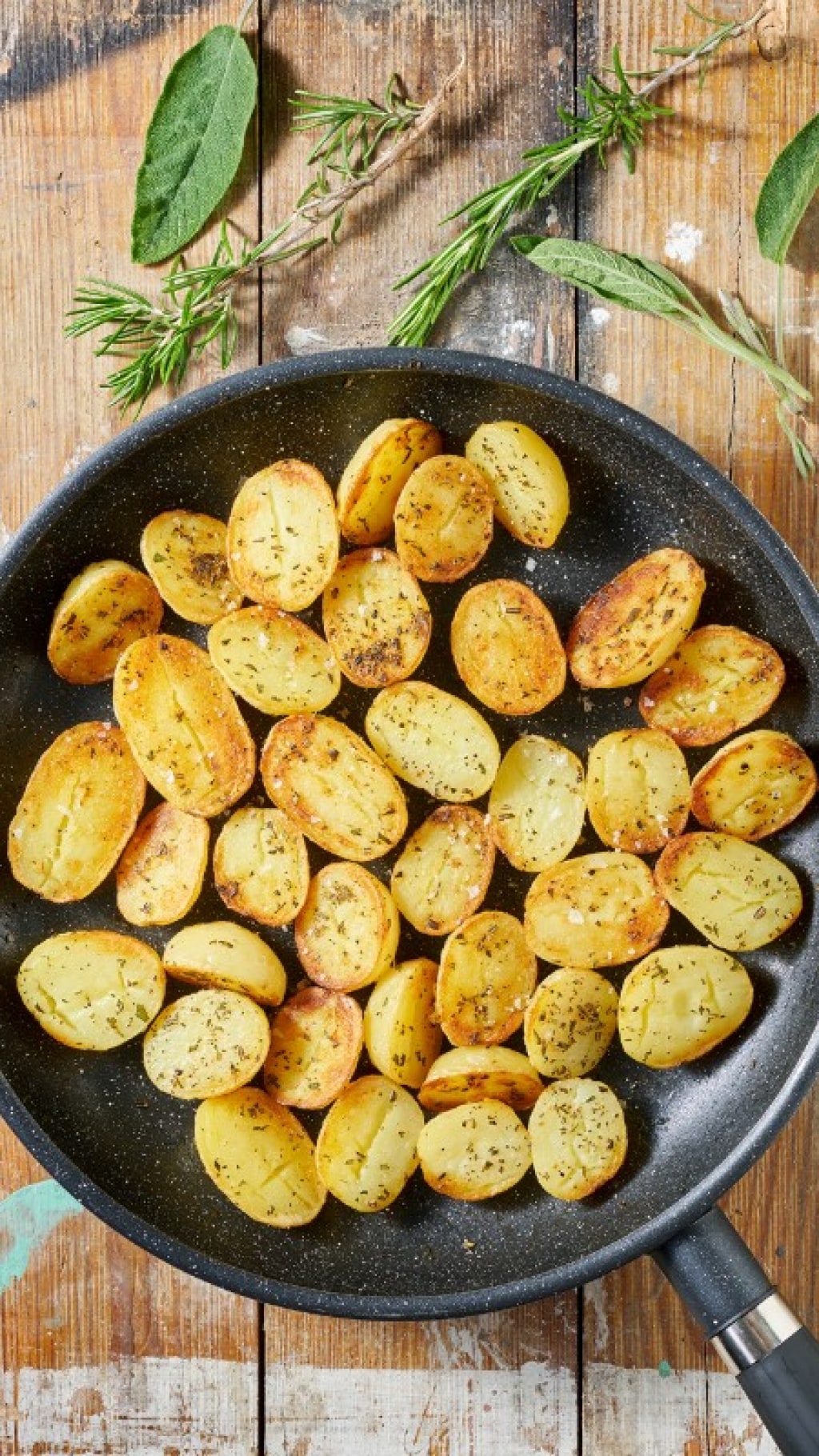 Proseguite la cottura fino a ottenere una doratura omogenea e le patate novelle in padella sono pronte.