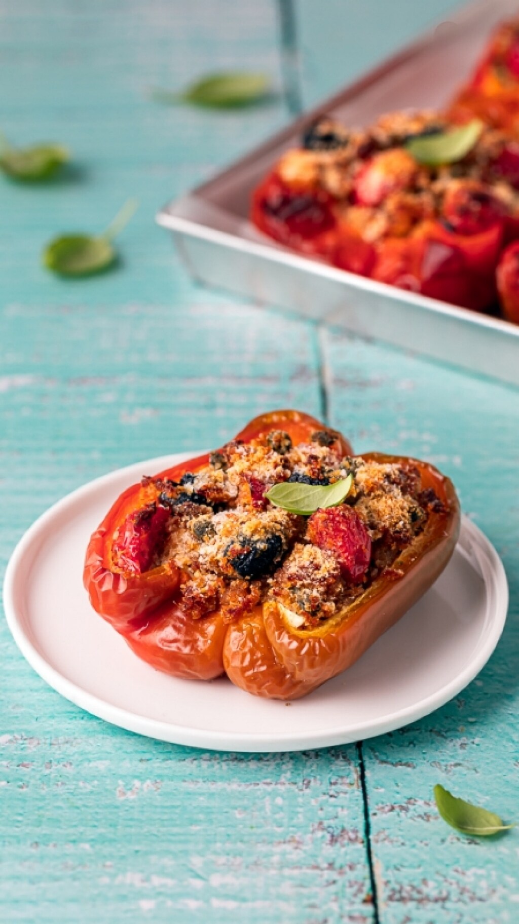 Potete preparare i peperoni ripieni di tonno in anticipo, perché sono buonissimi anche a temperatura ambiente. Per un tocco mediterraneo che con il tonno sott'olio si sposa benissimo, abbiamo arricchito il ripieno dei peperoni con acciughe, capperi, olive e pomodorini.