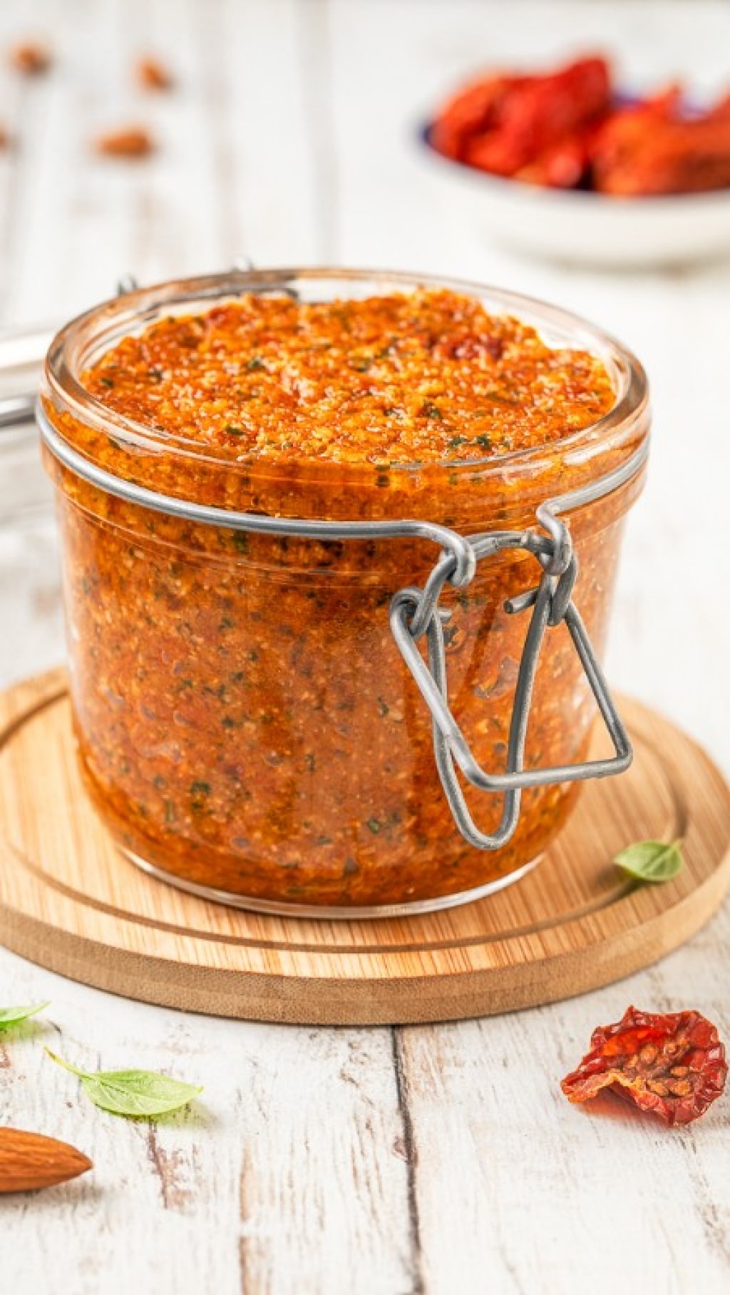 Il pesto rosso è un gustoso condimento che non richiede cottura e si prepara in pochi minuti.