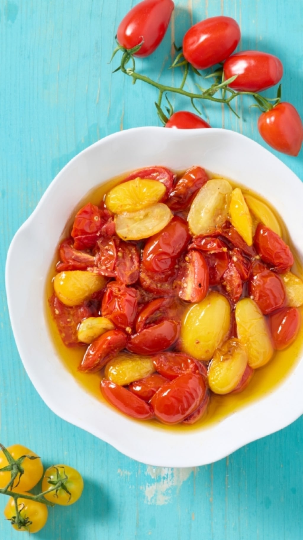 I pomodorini confit si possono preparare anche in friggitrice ad aria. Se avete poco tempo e cercate una ricetta facile e sfiziosa, questi pomodorini sono da provare. Li abbiamo fatti alla maniera francese, con abbondante olio: usateli per condire degli spaghetti o come antipasto su delle bruschette, sono dolci e deliziosi.