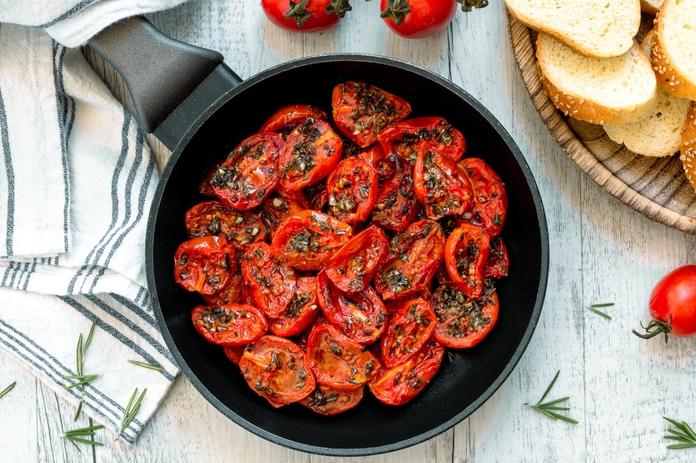 La ricetta per preparare i pomodorini saporiti in padella è facile e veloce. In pochi minuti, con soli aglio, rosmarino e olio otterrete un contorno sfizioso e aromatico, perfetto per accompagnare con gusto e semplicità piatti di carne o pesce, salumi o formaggi misti.