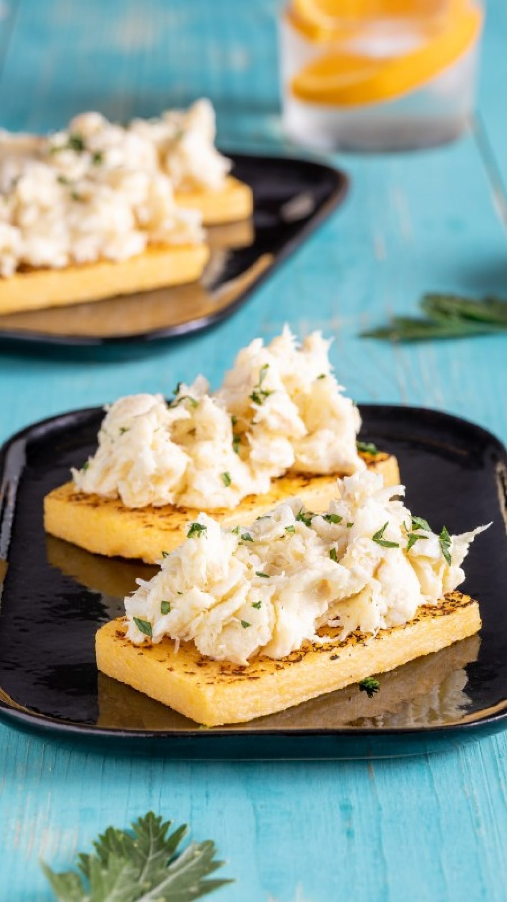 Dopo averlo spezzettato grossolanamente, trasferitelo nella ciotola della planetaria e iniziate così a mantecare la polpa con la frusta K (o foglia), incorporando man mano l’olio extravergine a filo facendo montare il baccalà quasi come fosse una maionese. Nel frattempo Tagliate a fette il lingotto di polenta e abbrustolitele da entrambi i lati sulla piastra o su una padella rovente.